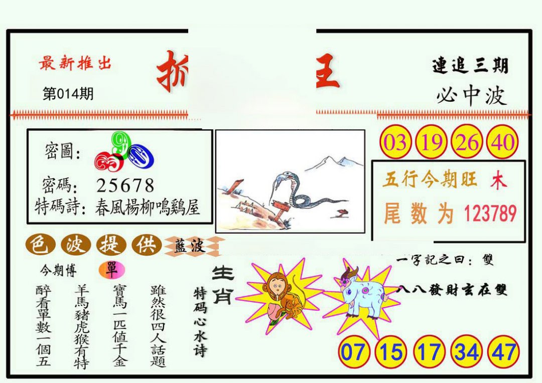 014期金牌③肖【鼠蛇牛】开:猴22准 |